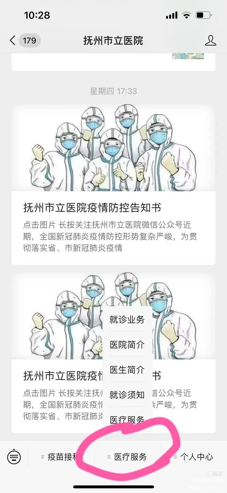 (一)、抚州市立医院公众号查询方式